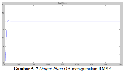1. Hasil perbandingan terhadap parameter yang ditentukan menunjukan bahwa PID yang diatur dengan GA berhasil mengarahkan sistem menuju output yang diinginkan dengan waktu yang lebih cepat dibanding dengan metode Z-N.